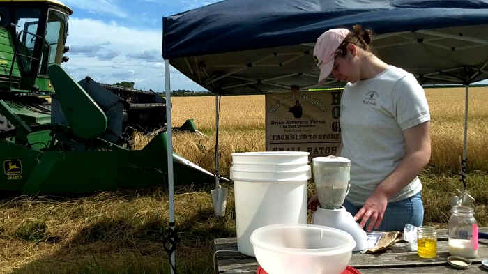 Turkey Red wheat to blender pancakes on July 15, 2019 on our farm in rural Dwight.